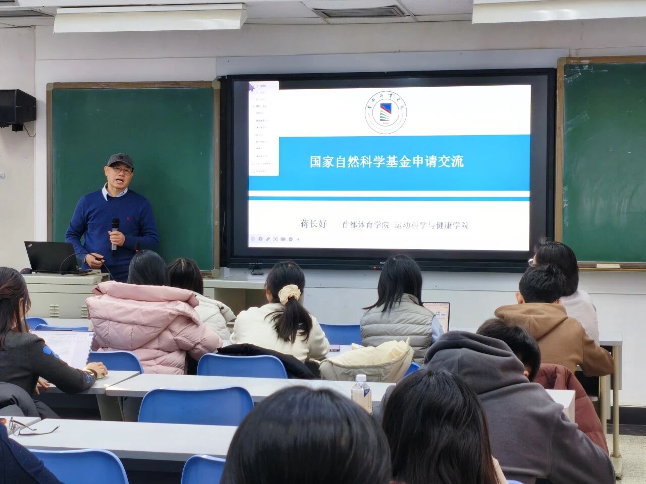 为助力学院师生提升国家自然科学基金申报质量,破解申报难题,近日我院特邀首都体育学院教授、博士生导师蒋长好教授开展专题讲座。蒋教授深耕锻炼与认知、脑功能促进及运动员脑功能评估等研究领域,兼具深厚的学术积淀与丰富的国家自然科学基金申报指导经验,为现场师生带来了一场针对性极强的干货分享。