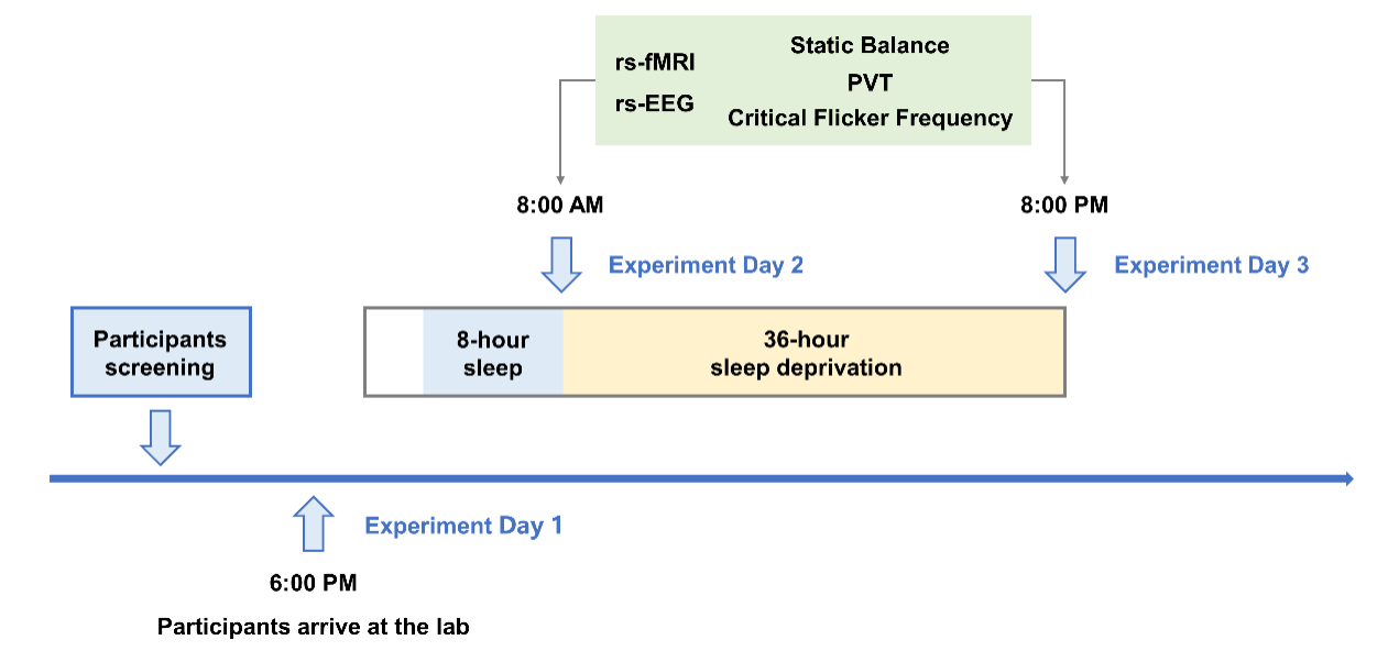 研究共招募了25名健康青年被试,接受连续36小时的完全睡眠剥夺。在剥夺前后,研究团队分别采集了被试的静态姿势平衡指标(包括压力中心轨迹长度、摆动面积及内外侧和前后方向的位移标准差)、心理运动警觉性任务反应时、临界闪烁融合频率、静息态脑电图以及静息态功能磁共振成像数据,并通过相关分析检验行为变化与神经活动改变之间的关联。
