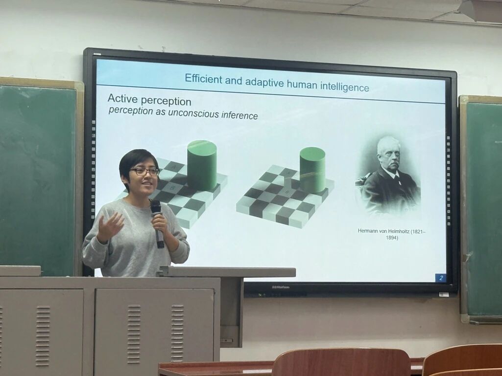 讲座中,张老师首先从智能体在复杂环境中的综合适应性能力切入,指出跨时间信息加工是其中的关键。当我们与复杂环境动态交互时,大脑会持续地、自发地利用过去信息来优化当下认知。张老师进一步介绍,认知过程涉及多区域协作,过去经验与知觉、决策、运动系统交互,最终做出运动输出,整个认知在感知运动循环中前进,跨时间加工有保持稳定和检测变化两个目标。