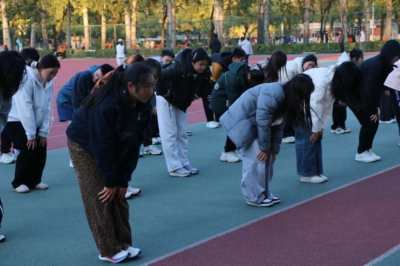 活动以200米慢走结合800米慢跑进行热身,让同学们循序渐进地提升心率、体温,并激活心肺功能。热身结束后,教育学院学生教练特别强调了运动健康管理,提醒大家及时添衣保暖,避免因体温快速变化及机体免疫“开窗期”而增加运动损伤和上呼吸道感染的风险。