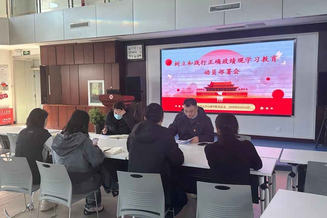 为深入学习贯彻习近平总书记关于树立和践行正确政绩观的重要论述,全面落实学校党委关于开展树立和践行正确政绩观学习教育的部署要求,2026年3月11日上午,心理学院党总支在教学实验楼322会议室召开学习教育动员部署会暨党员干部首期读书班。学院党总支委员会委员、师生党支部书记参加会议,会议由学院党总支副书记李杰主持。