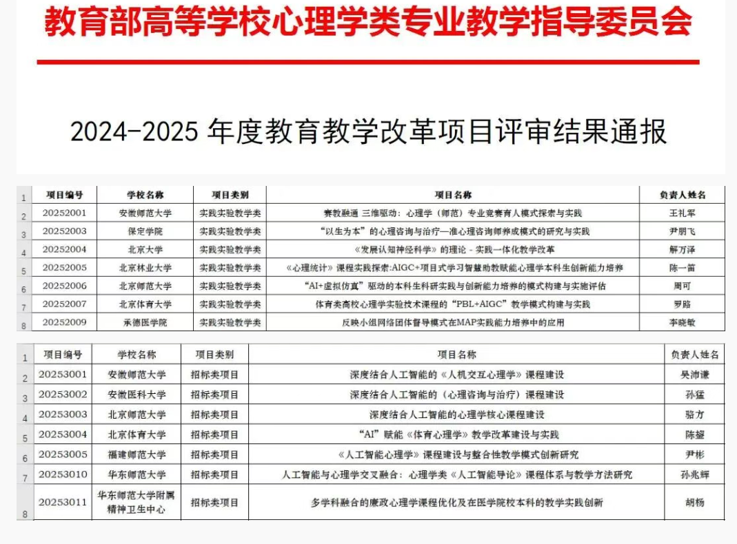 近日,教育部高等学校心理学类专业教学指导委员会公布了2024-2025年度教育教学改革项目立项名单。我院教师罗路主持的项目“体育类高校心理学实验技术课程的‘PBL+AIGC’教学模式构建与实践”获批实践实验教学类教改项目立项;我院教师陈鋆主持的项目“‘AI’赋能《体育心理学》教学改革建设与实践”获批招标类教改项目立项。