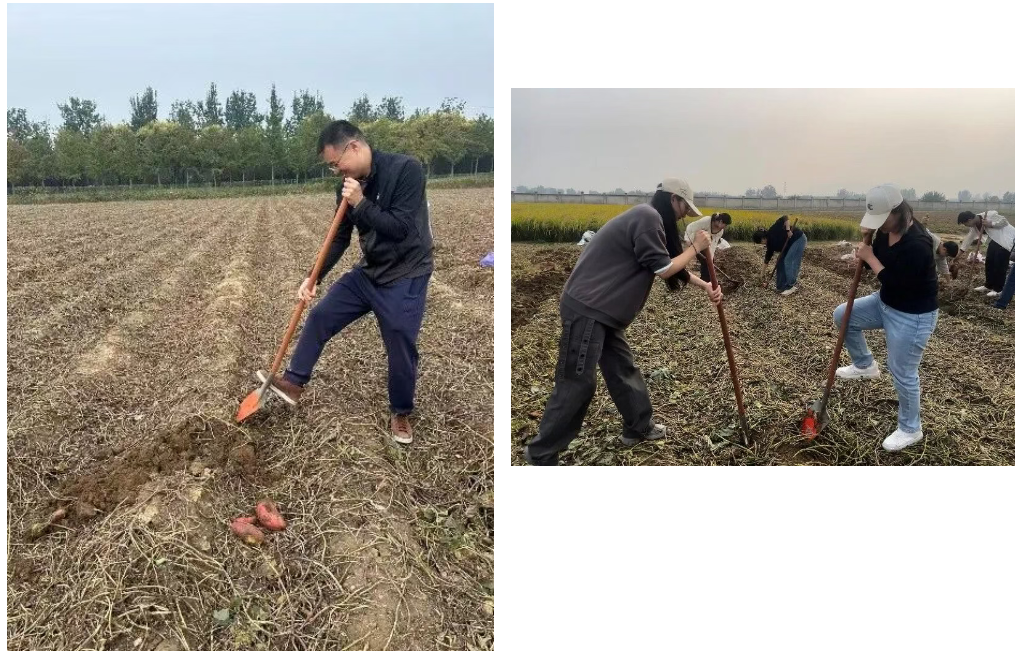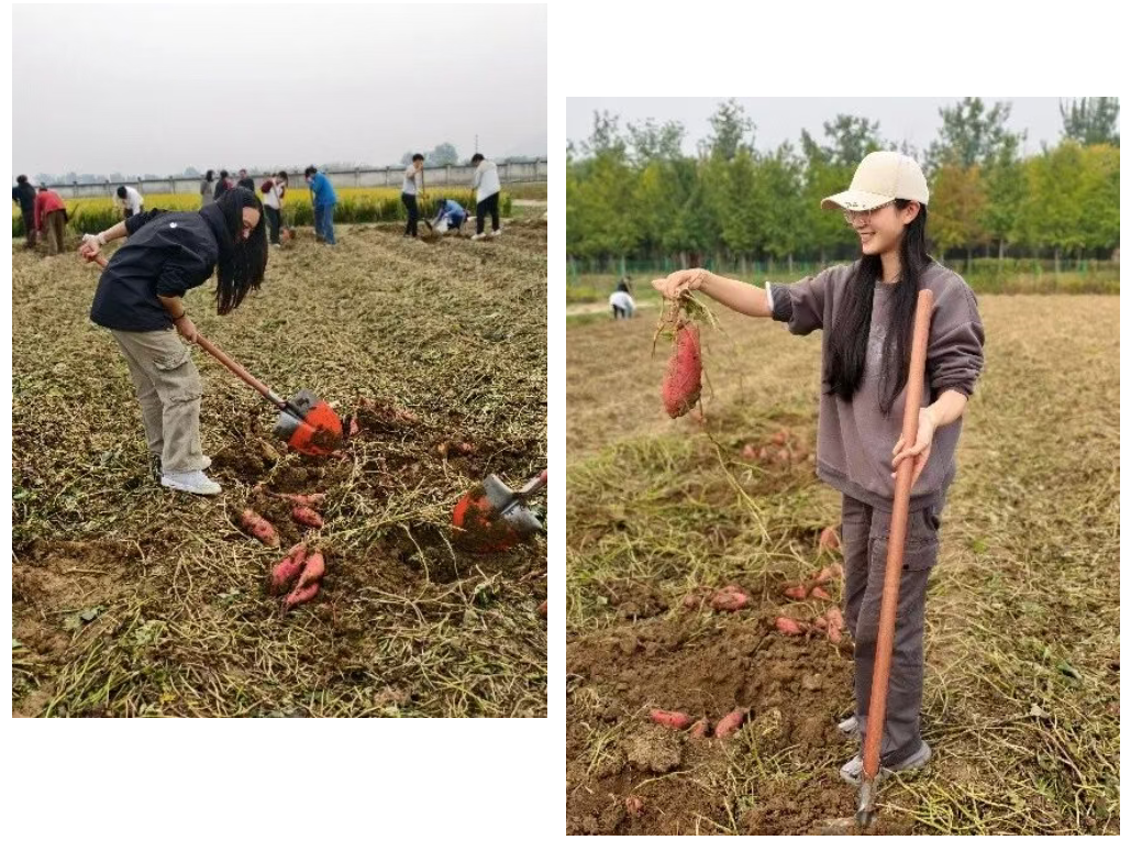 本次活动以“共享丰收”为主线,将劳动教育、自然科普与思政育人深度融合。在红薯采收现场,北京农学院陈教授细致讲解采挖技巧与生长知识,为同学们带来一堂生动的田间科普课。北京体育大学心理学院师生与北京科技大学学子通力协作,挥锹铲土、细心采挖、默契配合,汗水浸湿衣衫,泥土沾满双手,劳动热情却愈发高涨,田间地头洋溢着团结奋进的青春气息,同学们在躬身实践中深刻体悟“劳动创造价值”的内涵,真正实现了以劳树德、以劳增智、以劳强体的育人目标。