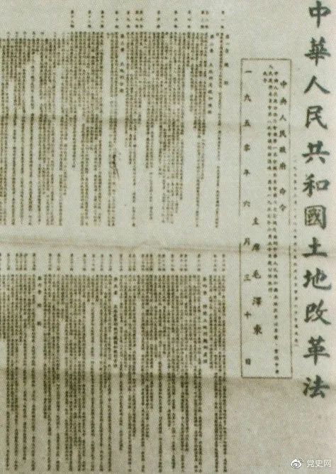 1950年6月30日,中央人民政府公布施行《中华人民共和国土地改革法》。